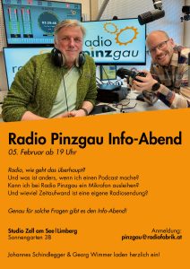 Du hörst uns auf 107,5 und 97,3 MHz. Von Unken bis Krimml und Taxenbach. Immer am Samstag ab 15 Uhr gehen in einem Programmfenster der Radiofabrik Sendungen wie Wos sogga? oder Treffpunkt Pinzgau on air. Wir senden live aus unserem Studio in Zell am See | Limberg.